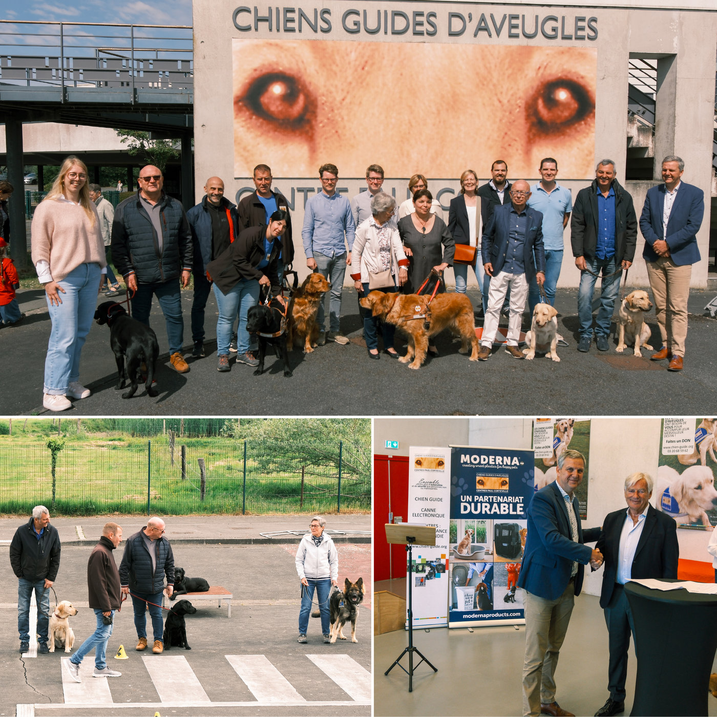 At MODERNA, we proudly support organizations improving life for both people and pets, across borders. Through our partnership with 'Association Chiens Guides d’Aveugles' in France, we visited their Roncq facility, met the dedicated team, and saw firsthand the incredible bond between guide dogs and their future companions. We continue to support their mission with product donations and ongoing collaboration.
