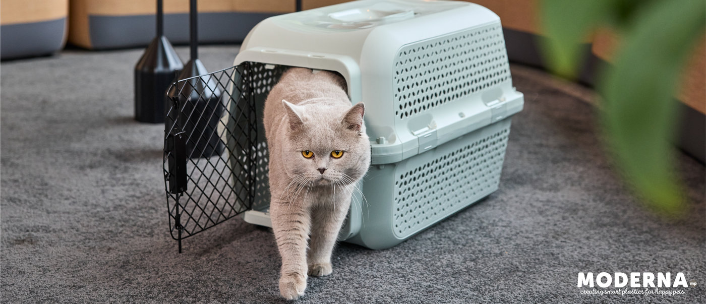 A sturdy and long-lasting carrier for pets up to 10 kg/22 lbs. A decorative ventilation pattern on the top and bottom trays keeps air flowing, while 4 secure hooks keep the black metal door safely in place.